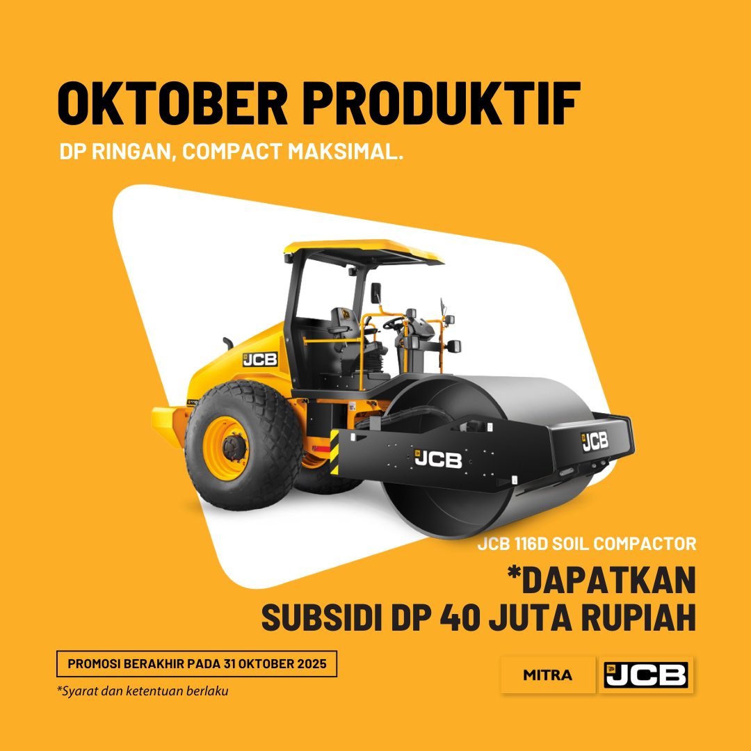 Tingkatkan produktivitas proyekmu dengan JCB 116D Compactor. Subsidi DP hingga 40 Juta untuk bulan Oktober ini! Jangan lewatkan kesempatan terbaik...